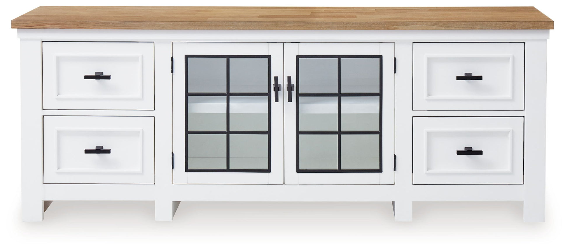 - Made with hardwood solids, MDF substrates and butcher block oak veneer