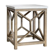 Catali - Stone End Table - White & Light Brown