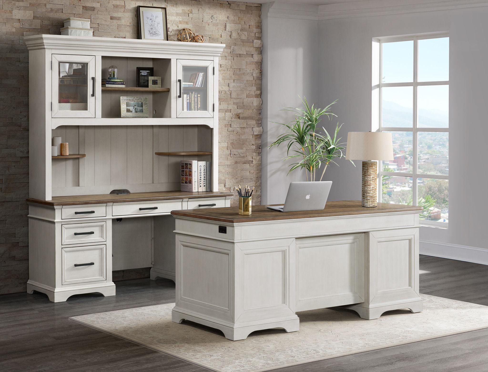 Drake - Executive Desk - Rustic White / French Oak