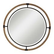 - This Forged Iron Mirror Frame Is Finished In A Textured Rust Black That's Wrapped In Natural Rope Bringing A Coastal Feel To Any Room. The Round Mirror Is Surrounded By A Generous 1 1/4" Bevel.