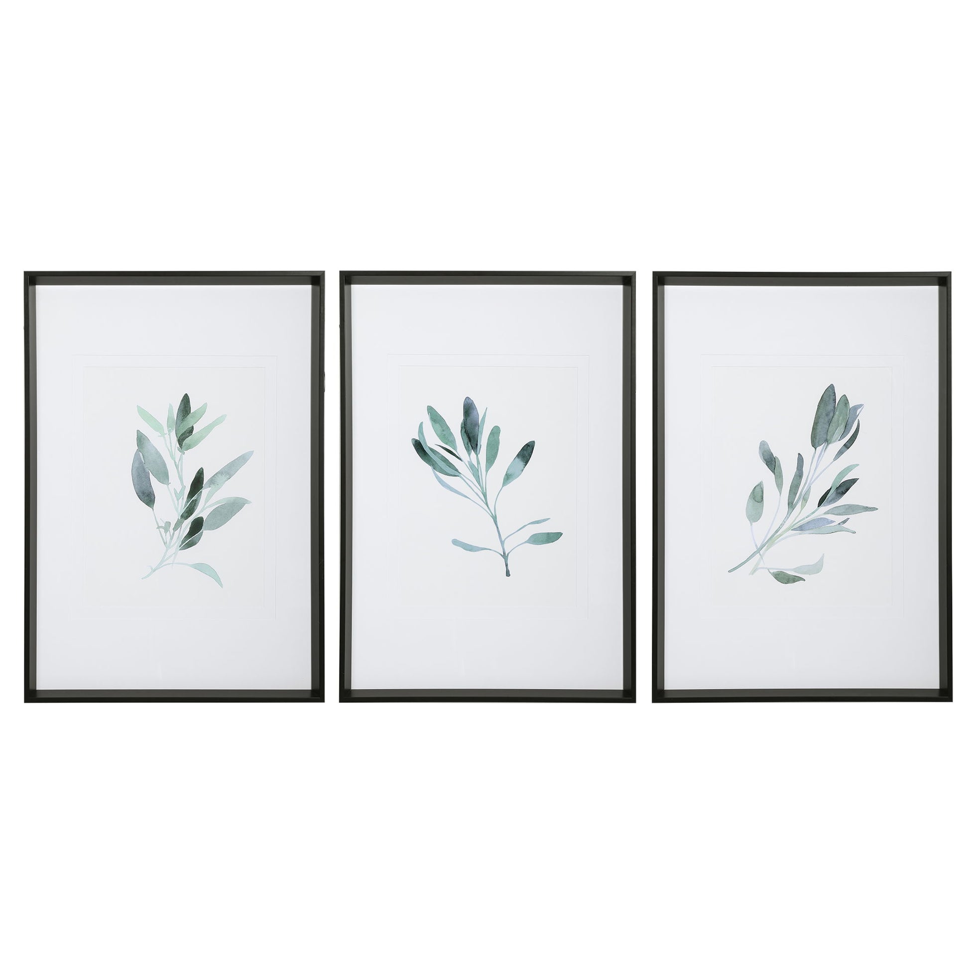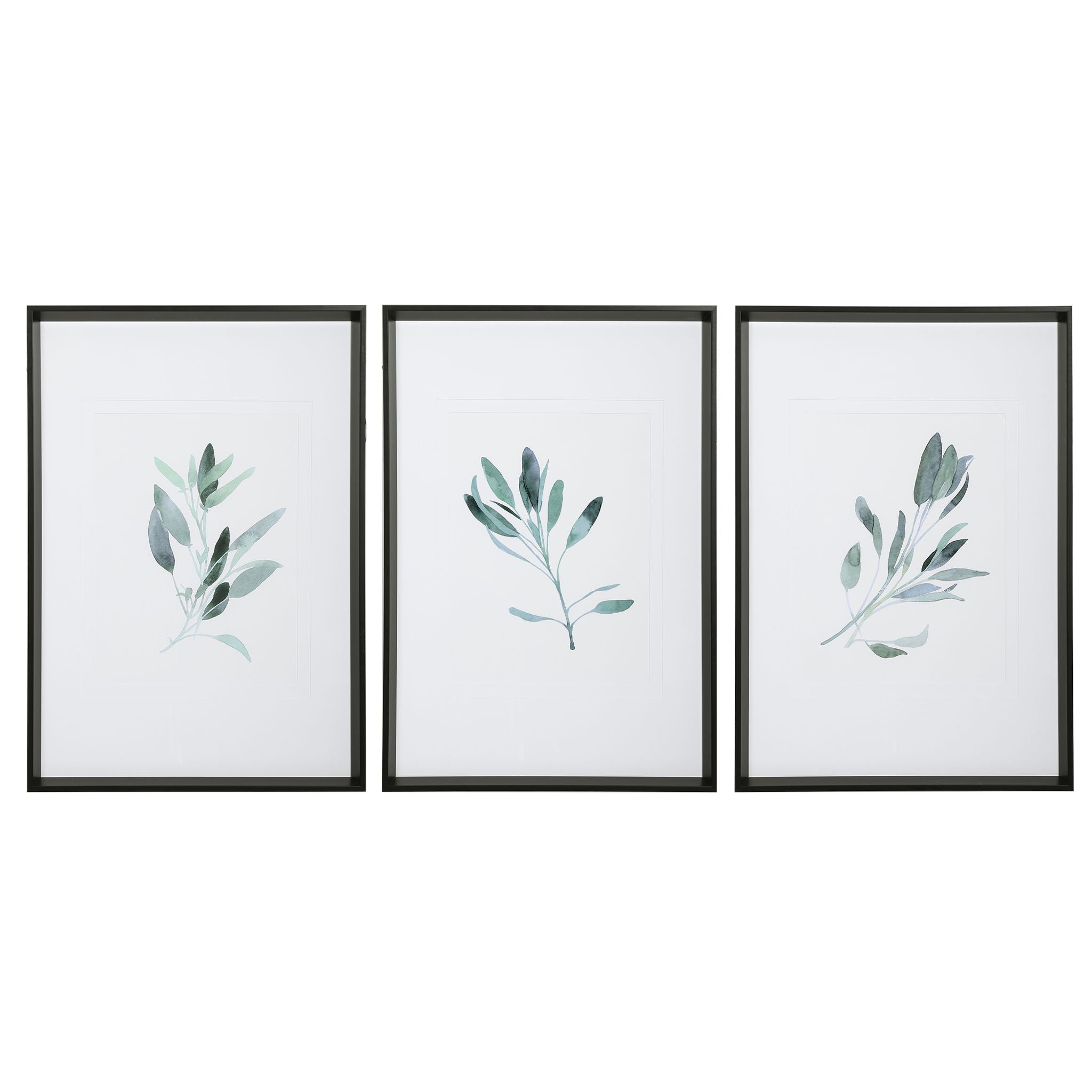 Simple Sage - Watercolor Prints (Set of 3) - White